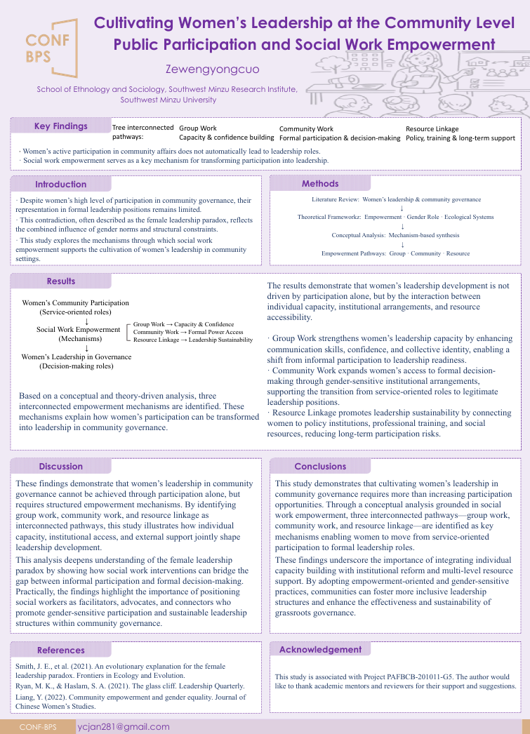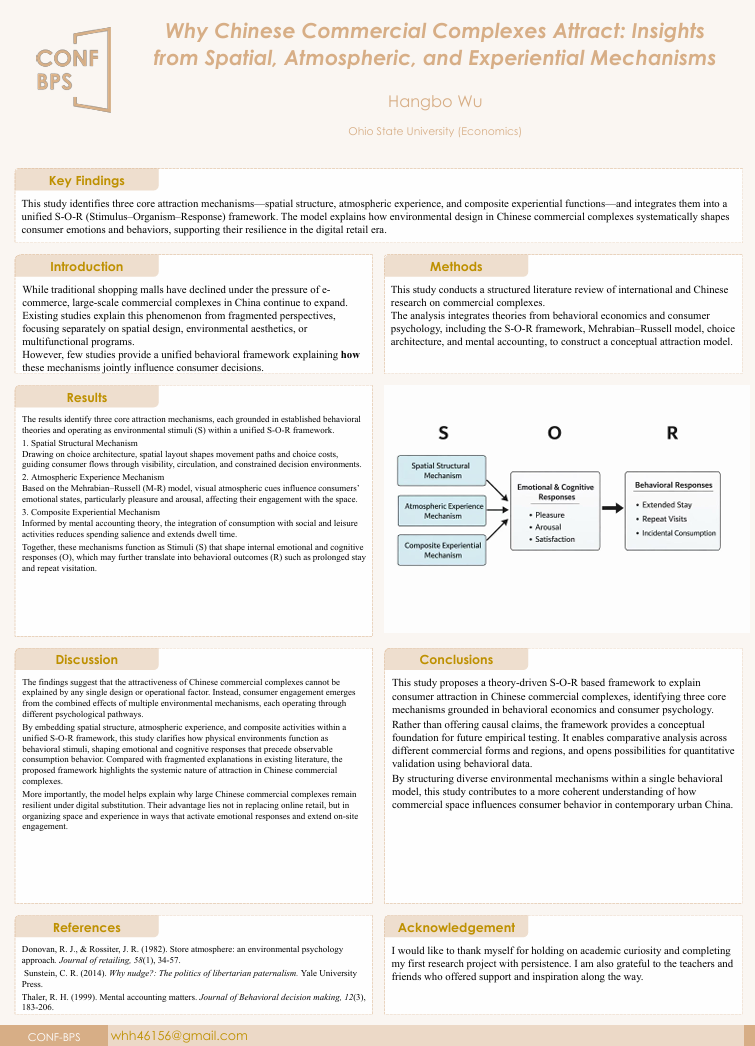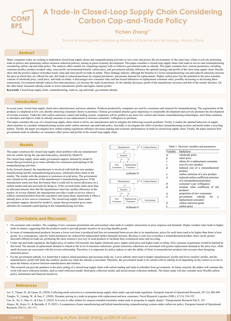 During the online session of CONF-BPS 2026, there will be a poster session which allow for a larger number of authors to share their research. The poster session will provide an opportunity for researchers to present their work in a visual and interactive way, allowing for more engagement and discussion with other attendees. Authors of qualified papers will be invited to present their works with digital posters. All posters can be seen on CONF-BPS 2026 official website. We believe that this online poster session will still be a great platform for participants to share, discuss, and cooperate. Hope you may enjoy the CONF-BPS 2026 online poster session!